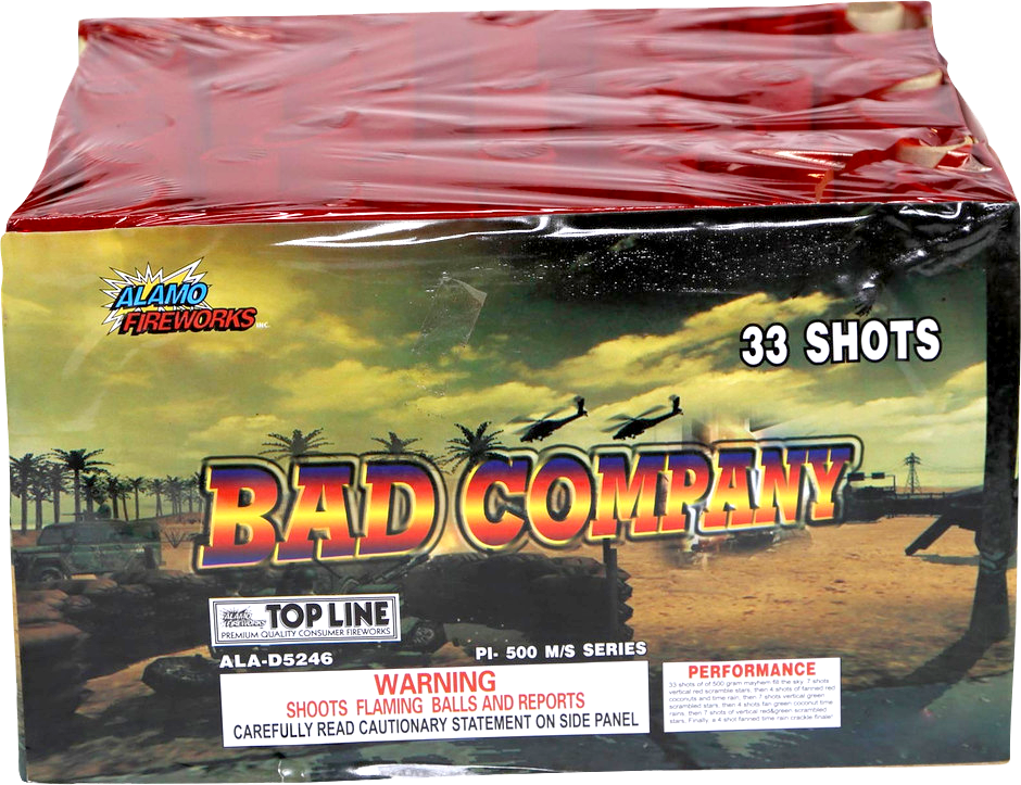 33 shots of mayhem will bring all the neighbors to your yard! Vertical red stars and fanned red and green coconuts and timerain will make you the hit of your block!