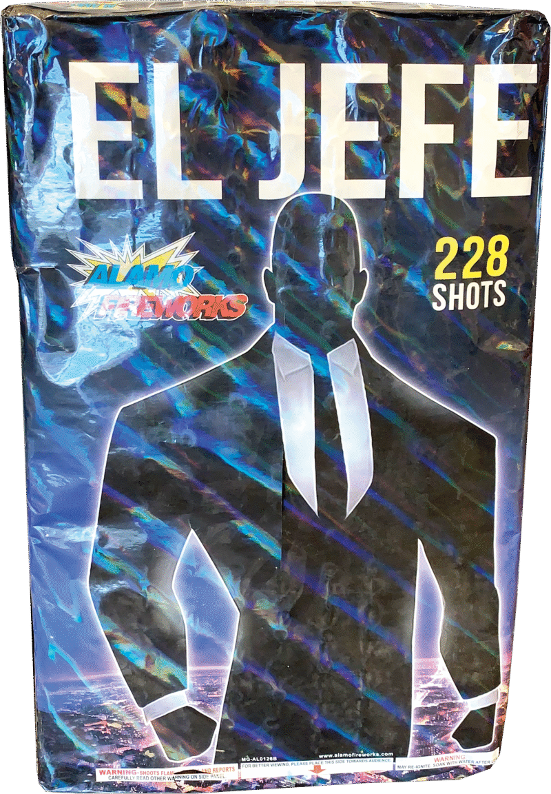 El Jefe: an awesome zipper cake featuring red,white and blue comets with a finale of breaking red, white and crackling! Talk about a BOSS! OG: an awesome zipper cake that shows off multicoled tails with crackling flowers before 2 rows of big, breaking finales!