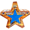 Be the BRIGHTEST star in the night sky! Red pearls with green strobes evolve into a wide fan of gold with a titanium explosion of colored pearls and bright blue stars.