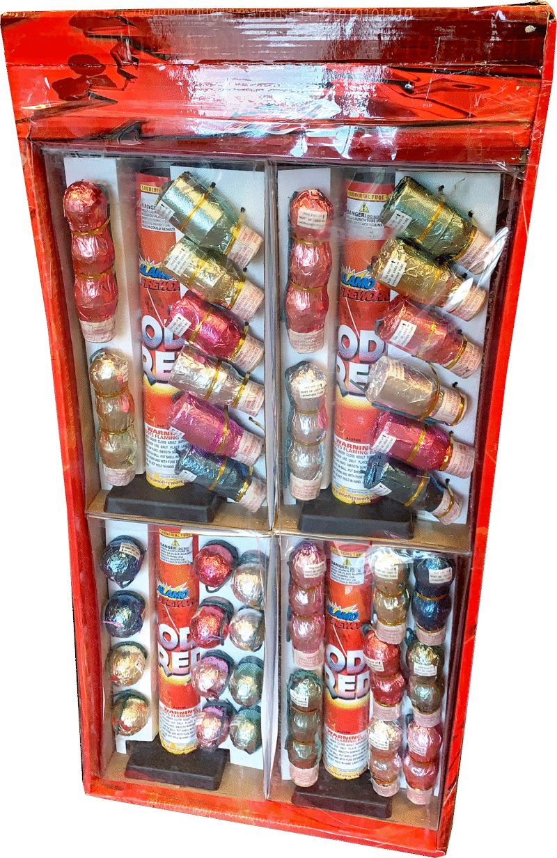 Put on your own super fireworks show! 36 shells and 4 shooting tubes produce 54 total shots of multi-colored bursts of glittering stars and crackle.