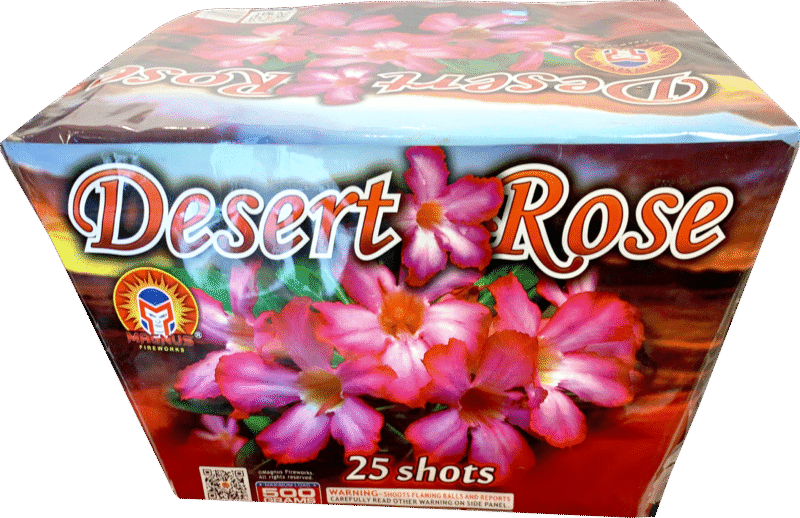 Everyone loves roses, but you can’t find these at your local florist! This 25-shot fan cake fires neon peonies that fade to a breathtaking desert rose lace effect and ends with a massive, multicolored finale.