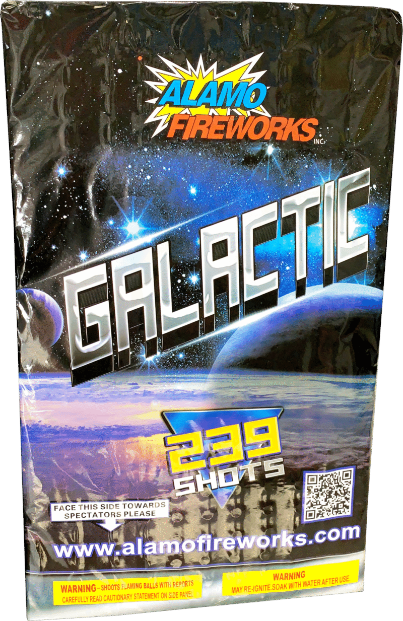 239 shots of out-of-this-world effects…Brilliant stars chase back and forth across the sky like a GALACTIC BATTLE, then loud crackle bursts forth in a massive “V” pattern to a huge finale of sky-filling, blinding white crackle explosions!